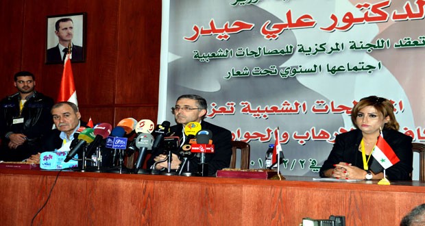 وأكد وزير الدولة لشؤون المصالحة الوطنية الدكتور علي حيدر في كلمة له خلال الاجتماع أن سورية وبعد أربع سنوات من الحرب التي تتعرض لها بحاجة إلى أبنائها أكثر من أي وقت آخر حيث “لن يكون هناك أرحم من السوريين على وطنهم وأقدر منهم على لملمة جراحهم” معتبرا أن المصالحات المحلية نقطة الارتكاز الأساسية لمحاربة الارهاب وللحوار الوطني وهو ما يقوم به الاعضاء على مستوى المناطق الشعبية بشكل كامل.