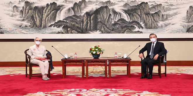 ونقلت وكالة شينخوا عن وانغ قوله بعد لقائه نائب وزير الخارجية الأمريكية ويندي شيرمان أمس إنه في ظل الصعوبات والتحديات الشديدة التي تواجه العلاقات بين الصين والولايات المتحدة يتطلب الأمر دراسة جادة من الجانب الأمريكي لاتخاذ خيارات صحيحة بشأن ما إذا كانت العلاقات الثنائية ستتجه للمواجهة أم التحسن.