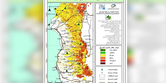 وأوضحت رئيس المنصة في الهيئة الدكتورة روزة قرموقة في تصريح لمندوبة سانا أن المنصة نشرت تحديثاً لمنتجها يبين خارطة مؤشر خطورة الحريق لمناطق الغابات لشمال غرب سورية للفترة من 27 وحتى 31 من شهر تموز الجاري والتي تظهر أن معظم أراضي الغابات شمال غرب سورية تحت تصنيف المرتفع والمرتفع جداً مقارنة بخرائط الأيام السابقة من الـ 22 وحتى الـ 26 منه التي كانت تشير إلى انحسار مؤشرات الخطر باتجاه سيادة الخطورة المتوسطة.