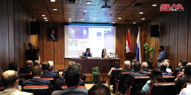 أقامت وزارة الخارجية والمغتربين والسفارة الروسية في دمشق بالتعاون مع وزارة الثقافة ندوة عن كتاب بعنوان (سورية الطريق الصعب من الحرب إلى السلم) للكاتبة ماريا خودينسكايا غولينيشيفا المستشار الرئيسي لدى إدارة التخطيط السياسي الخارجي في وزارة الشؤون الخارجية لروسيا الاتحادية وذلك في مكتبة الأسد بدمشق.