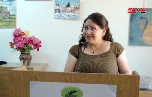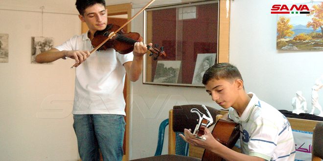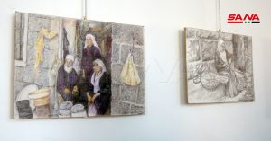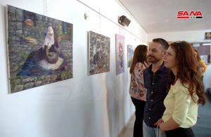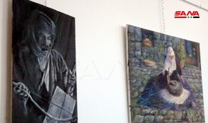 واستمع بعدها الحضور الذي غصت به قاعة فرع الاتحاد إلى مقطوعة موسيقية غربية لليافعين فراس وحمزة سراي الدين على آلتي الغيتار والكمان لتختتم الفعالية بافتتاح معرض للفن التشكيلي للفنانة أحلام العلي خريجة مركز الفنون التشكيلية بمديرية الثقافة وتضمن 5 منحوتات صغيرة باستخدام مادة الجبس إضافة إلى 22 لوحة بمقاسات مختلفة بألوان زيتية ومائية وفحم ورصاص وألوان خشبية وتناولت موضوعات مستمدة من البيئة المحلية والطبيعة والمرأة.