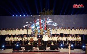 وقدمت خلال حفل الافتتاح مجموعة من العروض العسكرية جسدت بطولات الجيش العربي السوري واستعداده الدائم للدفاع عن حياض الوطن.