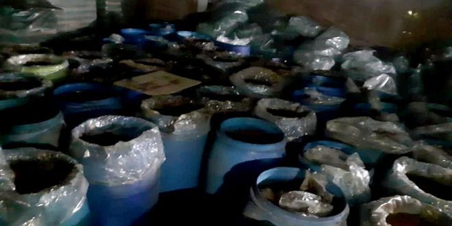 ضبط عناصر مديرية التجارة الداخلية وحماية المستهلك في درعا بالتعاون مع الجهات المختصة كميات كبيرة من رب البندورة غير صالحة للاستهلاك البشري ضمن معمل للكونسروة في مدينة إزرع.
