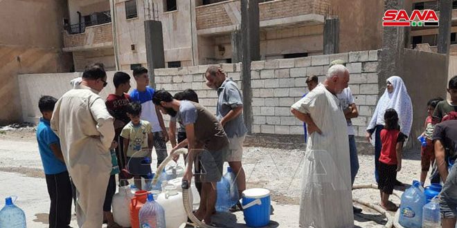 ولفت المهندس العكلة إلى أن جهود تخفيف آثار جريمة قطع المياه مستمرة من قبل الجهات الخدمية الحكومية والمنظمات الإنسانية والأهلية من خلال العمل على زيادة عدد خزانات المياه المنتشرة في الشوارع والحدائق والعمل على وضعها في المناطق التي لا تتواجد فيها إضافة للحرص على تعبئتها بمياه الشرب ولأكثر من مرة خلال اليوم بهدف تأمين حاجة الأهالي من المياه.