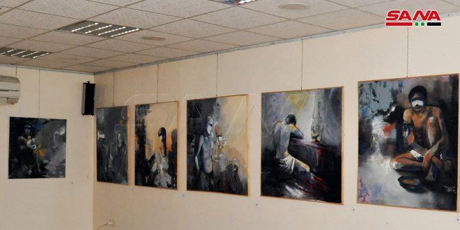 المعرض الذي يقيمه فرع دمشق في اتحاد الفنانين التشكيليين السوريين ضم 24 لوحة بتقنية الزيتي وبأحجام تراوحت بين المتوسط والكبير وطغى على الأعمال المشاهد الدرامية التراجيدية التي تصور معاناة الإنسان.