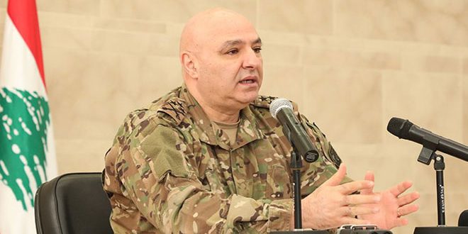 أكد قائد الجيش اللبناني العماد جوزيف عون أن الجيش سيبقى صمام أمان للبنان واللبنانيين والعين الساهرة على الحدود في مواجهة العدو الإسرائيلي والإرهاب.