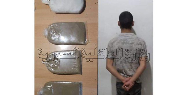 وأوضحت وزارة الداخلية في بيان تلقت سانا نسخة منه اليوم أنه وفي إطار الجهود المبذولة في مكافحة ظاهرة المخدرات بشتى أنواعها ومن خلال متابعة نشاط مهربي ومروجي المواد المخدرة تمكن فرع الأمن الجنائي بحمص من إلقاء القبض على أحد الأشخاص في شارع الستين بالمدينة.