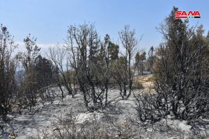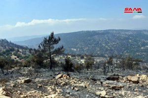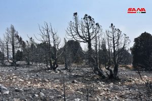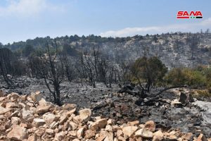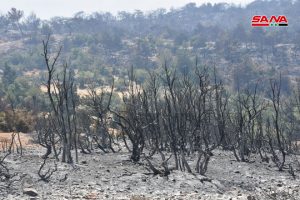 وبين المهندس قطنا أن الحريق لم يمتد على مساحات واسعة في الأراضي السورية حيث انتشرت النيران لمسافة لا تقل عن 2 كم وبعمق نحو 500 متر لكنها تسببت بضرر كبير للغطاء النباتي والتنوع البيولوجي لأن معظم الأشجار المزروعة في الموقع هي من النوع المعمر من الصنوبريات والسنديان وغيرها.
