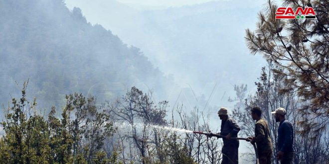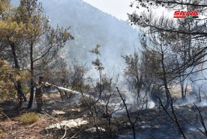 أخمدت فرق الإطفاء في محافظة حمص مدعومة بعناصر من الجيش العربي السوري الحريق الذي امتد مساء أمس الأول من الأراضي اللبنانية باتجاه أطراف قرية أكوم بمنطقة القصير بريف حمص الجنوبي الغربي وتتم حالياً عمليات التبريد كما تعمل الآليات على إنشاء خط نار فاصل بين الحدود السورية واللبنانية.