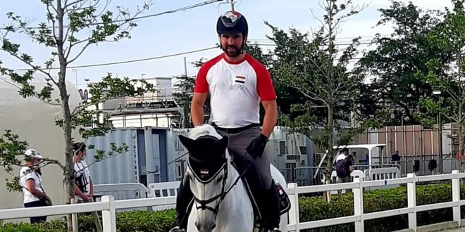 يتابع الفارس أحمد حمشو تدريباته على جواده (ديفيل) استعداداً للمشاركة في منافسات مسابقات القفز على الحواجز في دورة الألعاب الأولمبية المقامة في طوكيو والتي سيفتتحها يوم الثلاثاء القادم.