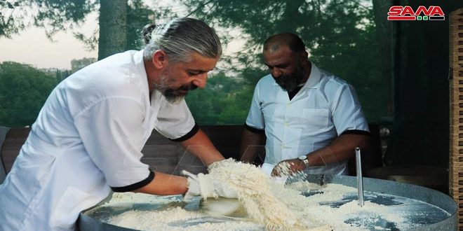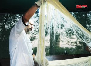 سانا التقت نادر خلال إعداده حلوى غزل البنات ضمن فعاليات معرض الزهور بدورته الـ 41 والذي تقيمه وزارة السياحة بالتعاون مع محافظة دمشق حيث قال “إنه يصنع هذه الحلوى منذ أكثر من 35 عاماً وأنه شارك بالمعرض لتعريف الزوار بهذه الحلوى التي ما زال يعتمد في صناعتها على الطرق التقليدية اليدوية في العمل”.