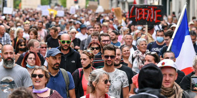 تظاهر أكثر من مئتي ألف معارض لتوسيع نطاق الشهادة الصحية في عطلة نهاية الأسبوع الثالثة في فرنسا.