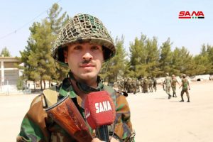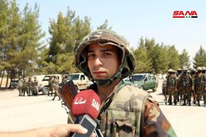 وفي حماة التي تنعم مدينة وريفاً بالأمن والاستقرار بعد دحر المجموعات الإرهابية يمضي ويواصل أبطال الجيش التدريب المستمر لرفع جاهزيتهم القتالية فهم السياج المنيع يحمي تراب الوطن ويرفعون رايات النصر على خطوط النار وجبهات القتال حيث يقول المقاتل وسيم لمراسل سانا من أحد مواقع التدريب “نحن ماضون لنكمل مسيرة التضحية .. لنحقق النصر الكبير بتحطيم آخر مواقع الإرهاب”.
