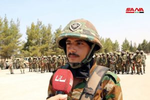 بدوره أكد الملازم طارق من ساحة تشرين للتدريب أنهم “مستمرون بالتدريب للوصول إلى أعلى درجات الجاهزية القتالية” مضيفاً “نؤكد في هذه المناسبة أننا ورفاق السلاح على اتم الاستعداد للدفاع عن كل ذرة تراب في وطننا الغالي” بينما قال المدرب فريز “نشعر بالفخر والعزة لأننا ننتمي لهذه المؤسسة الوطنية العريقة وبهذه المناسبة نجدد العهد الذي قطعناه على أنفسنا عندما التحقنا بهذه المؤسسة المقدسة أن نعمل على إعداد المقاتل بأفضل جاهزية وأفضل لياقة وأحسن صورة اخلاقية ليكون حامي الوطن و ناصراً للقضايا الوطنية”.
