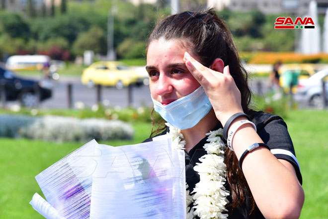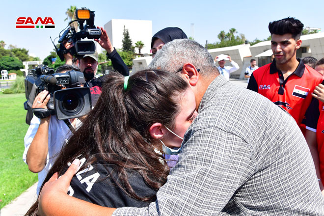 باقات ورد وحضن الأهل وصيحات الفرح كانت في استقبال لاعبة منتخب سورية لكرة الطاولة هند ظاظا اليوم عند مدخل الهيئة العامة للإذاعة والتلفزيون بساحة الأمويين لدى وصولها عائدة من العاصمة اليابانية طوكيو بعد انتهاء مشاركتها في دورة الألعاب الأولمبية.
