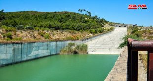 ولفت إلى أن حجم التخزين في السد يصل إلى 140 مليون متر مكعب وارتفاعه 72 متراً وطول جسم السد 806 أمتار مبيناً أن الهدف من المشروع تنظيم جريان النهر الكبير الشمالي ودعم بحيرة سد 16 تشرين لإرواء 7500 هكتار من الأراضي الزراعية وتأمين مياه الشرب للتجمعات السكانية القريبة.