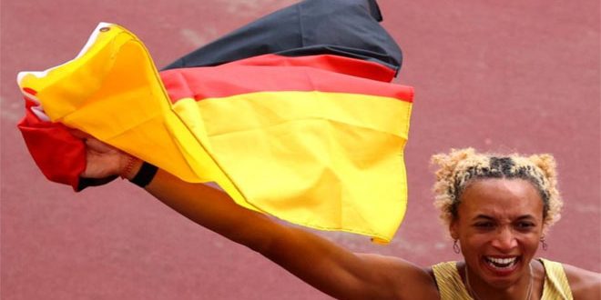 توجت الألمانية ماليكا ميهامبو اليوم بالميدالية الذهبية لمسابقة الوثب الطويل للسيدات ضمن منافسات ألعاب القوى في أولمبياد طوكيو.