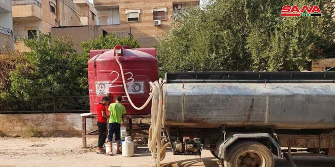 وتستمر المؤسسة العامة لمياه الشرب بالتعاون مع المنظمات والجمعيات الأهلية بنقل المياه الصالحة للشرب إلى الأهالي عبر الصهاريج وذلك من محطتي نفاشه وتل براك بريف المحافظة ومن المناهل الخاصة بعد اعتمادها كونها صالحة للشرب.
