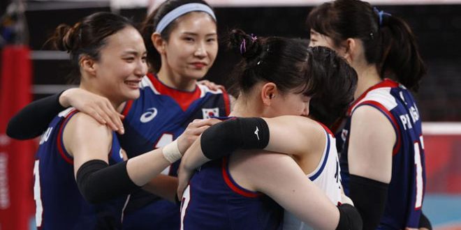 وفي الكرة الطائرة حققت سيدات كوريا الجنوبية مفاجأة من العيار الثقيل بفوزهن على تركيا 3-2 فتقدمت تركيا 25-17 وعدلت كوريا بذات النتيجة ومن ثم تقدمت 28-25 قبل أن تعيد تركيا الأمور إلى نقطة الصفر 25-18 لتحسم كوريا الشوط الفاصل 15-13 لتقطع بطاقة العبور إلى نصف النهائي وتنتظر الفريق الفائز من مباراة البرازيل ومنتخب اللجنة الأولمبية الروسية.