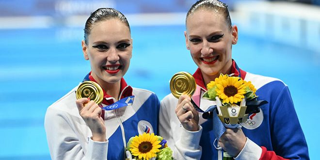 وفازت السباحتان الروسيتان سفيتلانا روماشينا وسفيتلانا كوليسنيشنكو بالميدالية الذهبية في مسابقة الثنائي في أولمبياد طوكيو.