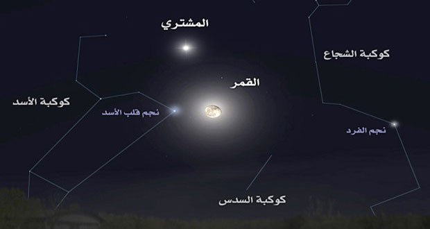 أكد نائب رئيس الجمعية الفلكية السورية المهندس عبد العزيز سنوبر لنشرة سانا المنوعة أن هواة الفلك على موعد لمشاهدة اقتران كوكب المشتري مع القمر في كوكبة الأسد وبفاصل نحو 8 درجات قوسية.