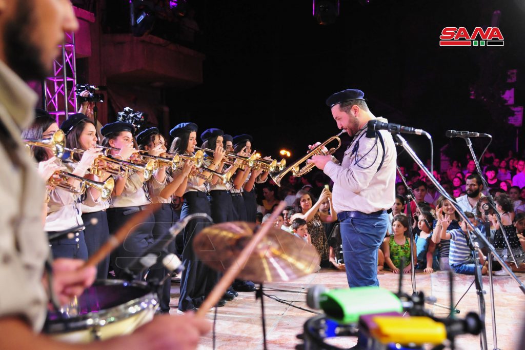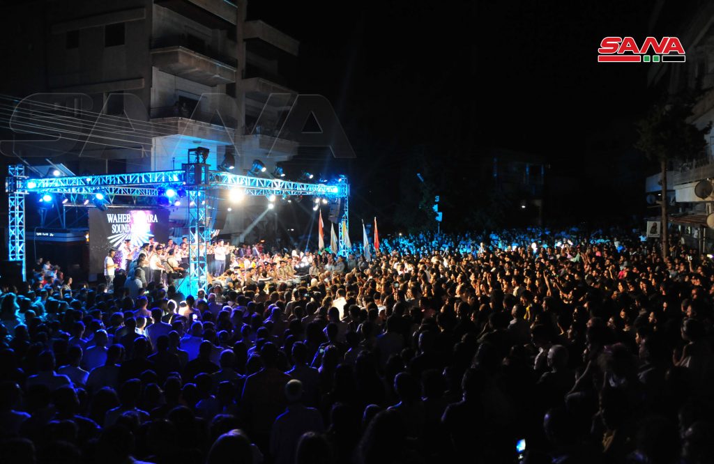 واستمع الأهالي في ساحة العين إلى عزف موسيقي لفرقة مراسم رعية اجيا صوفيا للروم الملكيين الكاثوليك.