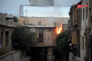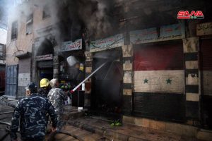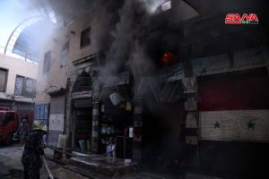 وأفاد مصدر من إطفاء دمشق لمراسلة سانا بأن الحريق نشب في سوق الصابون المجاور لقلعة دمشق وخلف أضراراً مادية بمحلين لبيع الصابون.