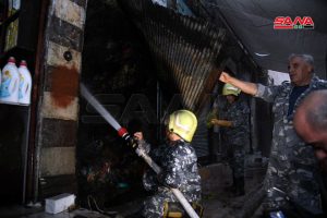 أخمد عناصر من فوج إطفاء دمشق اليوم حريقاً مجاوراً لمدخل قلعة دمشق أسفر عن أضرار بمحلين تجاريين.