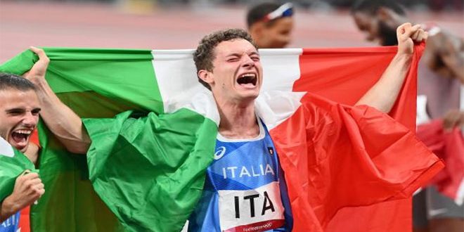 فجر المنتخب الإيطالي مفاجأة من العيار الثقيل في دورة الألعاب الأولمبية المقامة حالياً في العاصمة اليابانية طوكيو اليوم الجمعة بفوز بذهبية سباق التتابع 4 في 100 متر للرجال.