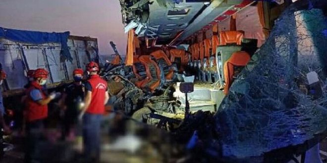 وذكرت وكالة الأناضول الناطقة باسم النظام التركي أن “شاحنة اصطدمت بحافلة على متنها 50 راكباً بمنطقة سوما في محافظة مانيسا ما أسفر عن مصرع ستة أشخاص وإصابة 37 آخرين تم نقلهم إلى المستشفى لتلقي العلاج” لافتة إلى أنه تم الشروع بالتحقيق في ملابسات الحادث.