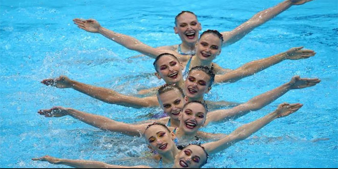 فاز منتخب روسيا للسيدات بالميدالية الذهبية في رياضة السباحة المتزامنة ضمن الألعاب الأولمبية المقامة في طوكيو.