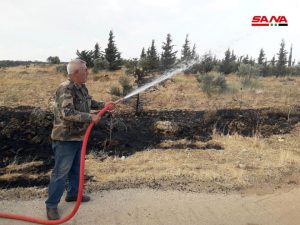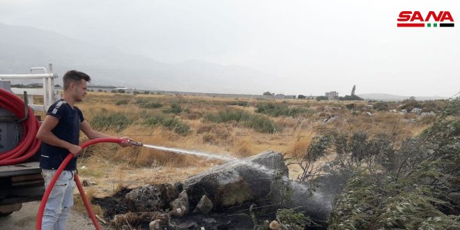 أخمد عناصر الإطفاء بالتعاون مع الأهالي حريقاً حراجياً اندلع اليوم في سهل البياضية بمنطقة مصياف بريف حماة.