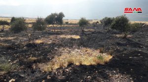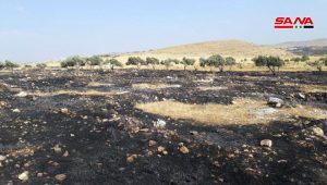 وقال مدين العلي مدير مركز حماية الغابات في حماة لمراسل سانا إن الحريق اندلع بداية في منطقة تلال صخرية وامتد نتيجة الأعشاب اليابسة إلى كروم الزيتون وبجهود عناصر الإطفاء وأهالي المنطقة تم إخماد الحريق بشكل كامل مبيناً أن الحريق أدى إلى تضرر نحو 5 دونمات وتجري حالياً فرق الإطفاء عمليات التبريد.