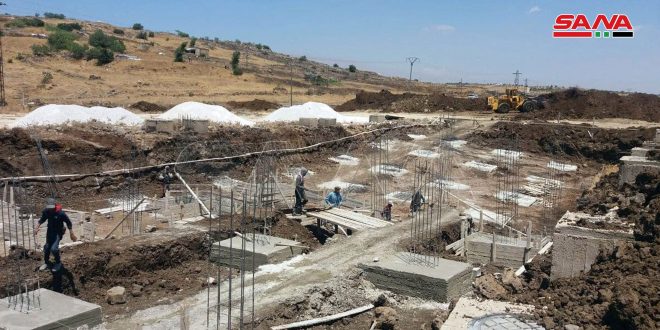 تتواصل في المنطقة الحرفية ببلدة خان أرنبة بريف القنيطرة المرحلة الثانية من الأعمال الإنشائية لإنجاز المقاسم الحرفية فيها.