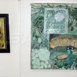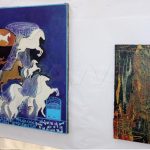 في الجانب المقابل حضرت أعمال الفنان شاهين المنفذة بتقنية الألوان الزيتية مع بعض أعمال الحرق على الخشب والتي عكست الحرب الإرهابية على سورية واستهداف حضارتها وآثارها.