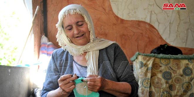 في منزلها الريفي المتواضع بقرية البهلولية شمال شرق مدينة اللاذقية جلست السيدة سكر إبراهيم غريب أم منال ترتدي زياً بسيطاً وتضع على رأسها منديل الحرير الذي ورثته عن والدتها بينما يداها منهمكتان في نسج أعواد القش لإكمال الطبق الذي بدأته في الصباح.