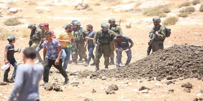 أصيب عدد من الفلسطينيين واعتقل آخرون اليوم جراء قمع قوات الاحتلال مظاهرة مناهضة للاستيطان في بلدة مسافر يطا جنوب مدينة الخليل بالضفة الغربية.