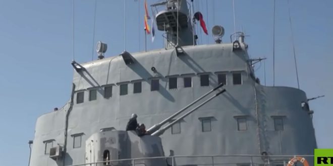 وأشار البيان إلى أنه جرى أيضاً تدريب طاقم السفينة الحربية على إلقاء قنابل يدوية واتخاذ تدابير للقضاء على المجموعات التخريبية للعدو المفترض تحت الماء أثناء وجود السفينة في مرسى غير محمي.