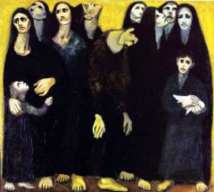 وكمن يستشعر حجم الكارثة ما سيطال الأمة أقام كيالي معرضه الأكثر شهرة والذي جلب له أيضا الكثير من المتاعب تحت عنوان /في سبيل القضية/ في الـ 24 من نيسان 1967 بالمركز الثقافي في ابو رمانة وضم /30/ لوحة مرسومة من الفحم تلخص المعاناة الفلسطينية حيث يشير الناقد التشكيلي سعد القاسم إلى أن القدر شاء أن تقع نكسة 5 حزيران والمعرض لا يزال قائماً ما أثر في نفسية كيالي فأحرق اللوحات كلها وأرشيفه الصحفي ثم دخل في أزمة أدت إلى تركه التدريس.