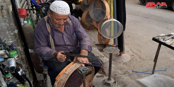 في إحدى زوايا المنطقة المحيطة بسوق وسط مدينة الحسكة يتخذ الحاج أبو كامل محله الذي لا يزال يعمل في صناعة الغرابيل منذ ما يزيد عن خمسة وثلاثين عاما ومن يقترب من المنطقة يسمع بوضوح صوت طرقه المنتظم على خشب الغربال ليطوعه بأحجام مختلفة وعند الانتهاء يعرضه للبيع على واجهة المحل.