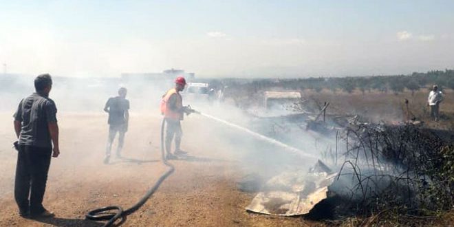 إخماد حريق اندلع بالأراضي الزراعية في قرية المحفورة بريف حمص الغربي