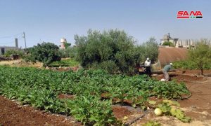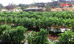 المشروع يقوم ضمن أرض مساحتها 6 دونمات يتم فيها إنتاج الخضار المتنوعة الشتوية والصيفية والزعتر الخليلي بالري بالتنقيط دون اللجوء إلى المبيدات والأسمدة الكيميائية كما تستفيد أشجار الزيتون والعنب المزروعة بالأرض من الخدمات المقدمة للوصول لمنتج عضوي نظيف وذلك كما بين المعنيون بالمشروع خلال حديثهم لمراسل سانا.