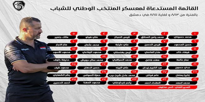 خمسة وثلاثون لاعباً على قائمة المدير الفني لمنتخب سورية للشباب بكرة القدم يواصلون تدريباتهم ضمن المعسكر الإعدادي الحالي المقام في دمشق تحضيرا لبطولة غرب آسيا التي ستقام في العراق في شهر تشرين الثاني المقبل.