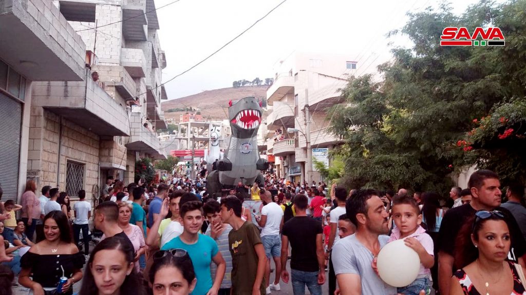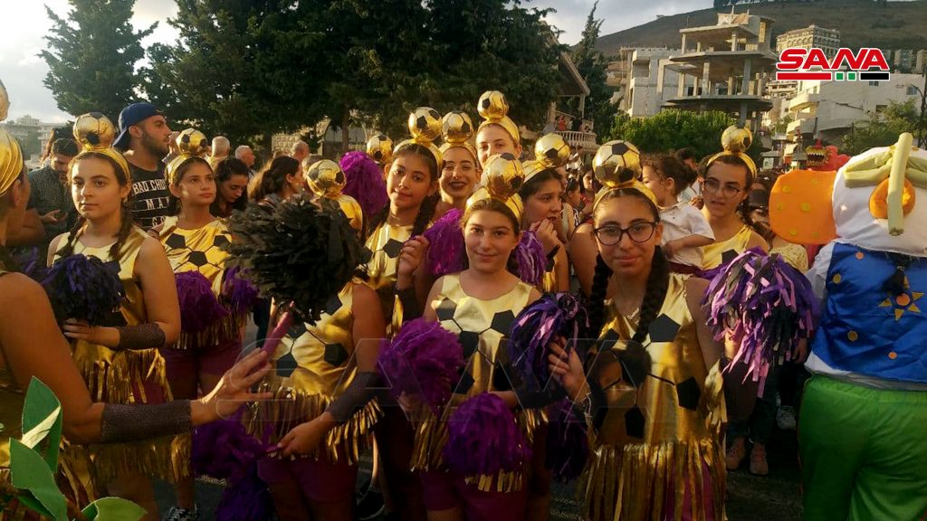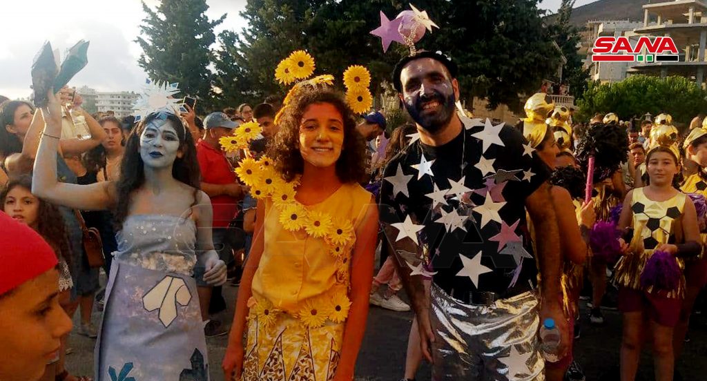 وجال الكرنفال الذي بات تقليداً سنويا مختلف أنحاء البلدة حيث انطلق من ساحة البلدية مرورا بالشوارع الرئيسة حاملاً معه معزوفات وألحاناً منوعة وعرض لوحات فنية وحركات استعراضية عفوية أدخلت البهجة والسرور إلى قلوب المحتفلين كما شارك بالاحتفال عدد من ذوي الاحتياجات الخاصة.