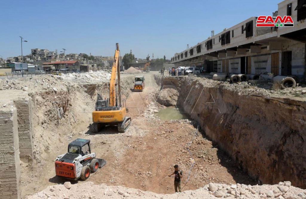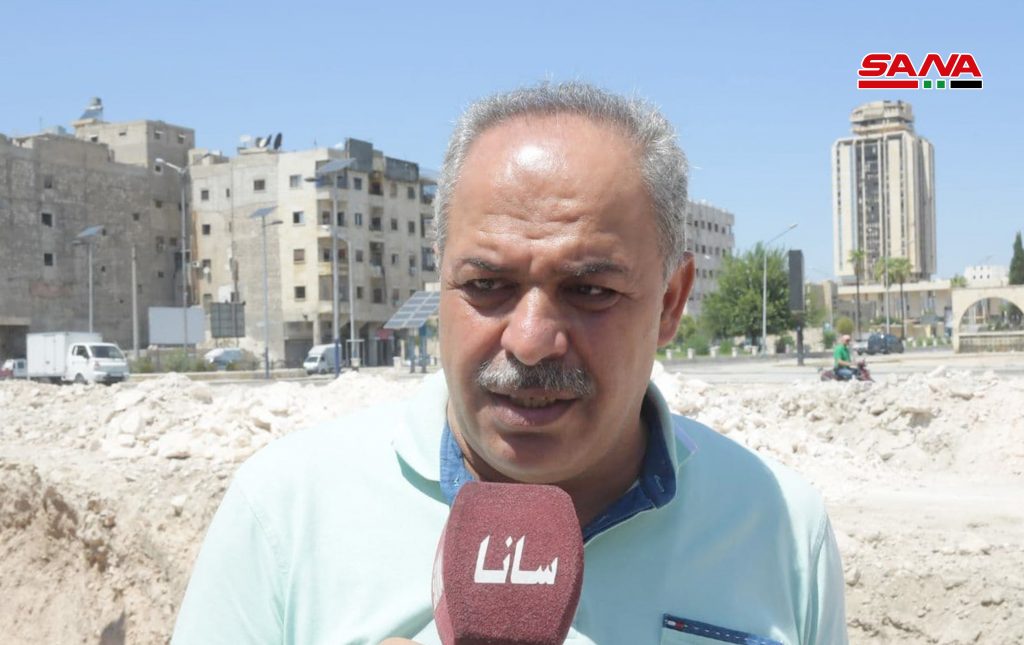 كاميرا سانا كانت في موقع المشروع ووثقت أعمال البنى التحتية الخارجية والداخلية حيث بين المهندس جمال كريم رئيس دائرة الدراسات في مجلس مدينة حلب أن العمل حاليا يتم على تنفيذ الكافيتيريات وعددها 6 والواقعة على واجهة سوق الهال وبمحاذاة الطريق الرئيسي للسوق حيث يتم منسوب التأسيس على عمق ستة أمتار