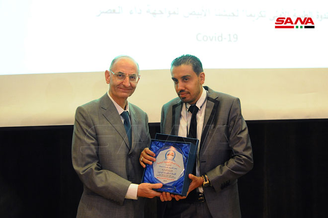الدكتور مروان الحلبي النائب العلمي لعميد كلية الطب بجامعة دمشق قال إن التكريم بادرة متميزة لدعم جهود الجيش الأبيض من أطباء وصيادلة وممرضين وفنيين والذين تضافرت جهودهم لمواجهة الوباء رغم الظروف الصعبة التي تواجهها سورية.