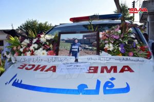 وانطلق موكب التشييع من مشفى مصياف الوطني مروراً بمنزل الزميلة الراحلة في قرية نهر البارد حيث ووري جثمانها الطاهر الثرى في مدافن القرية.