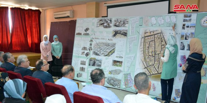 الدكتور نضال صطوف عميد كلية الهندسة المعمارية قال: “إن مشاريع الطلبة تمت عبر مجموعات حيث قدمت كل مجموعة دراسة ورؤية لمشاريع مستقبلية تتضمن مجمعات سكنية مستدامة ومؤقتة ومجمعات سياحية ومنتجعات وتنظيماً معمارياً لعدد من أحياء حمص وخاصة المتضررة من الإرهاب وذلك عبر أفكار علمية برؤى شبابية متطورة تؤكد وعي الشباب والتزامهم بما ينتظرهم في سوق العمل من إنجازات هندسية معمارية تعيد الألق لسورية ومدنها وشوارعها وأحيائها”.