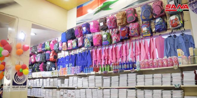 وأوضح مدير فرع المؤسسة عبد الحميد مسلم لـ سانا أنه تم طرح تشكيلة واسعة من مواد القرطاسية والحقائب والألبسة المدرسية والمستلزمات التعليمية في جميع صالات السورية للتجارة الرئيسية بجودة عالية وأسعار أقل من السوق بنسبة تتراوح بين 20 و30 بالمئة مبيناً أنه يتم البيع بالتقسيط لجميع العاملين في الدولة لمواد القرطاسية واللوازم التعليمية بقيمة 200 ألف ليرة دون فائدة.
