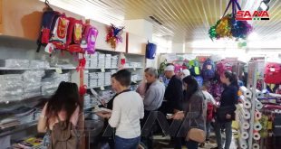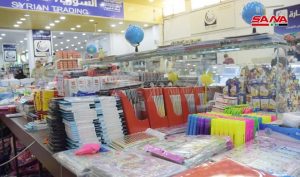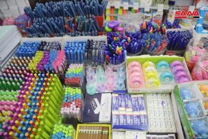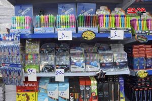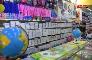 كاميرا سانا زارت عدداً من صالات السورية للتجارة واطلعت على عمليات بيع مواد القرطاسية المتوافرة حيث بين خالد شعبان مدير صالة الأكرمية أنه تم طرح تشكيلة واسعة من القرطاسية واللوازم المدرسية في أحد أجنحة الصالة وتتضمن دفاتر وأقلاماً وحقائب مدرسية وألبسة حيث شهدت إقبالاً واسعاً من الأهالي في أحياء الحمدانية وصلاح الدين وسيف الدولة والفرقان المجاورة للصالة.